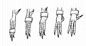 Nohu mláďete natřeme třeba vazelinou nebo máslem, a kroužek bez násilí a citem převlékneme přes tři nejdelší prsty a pak opatrně přes nejkratší prst, který přitiskneme k noze.